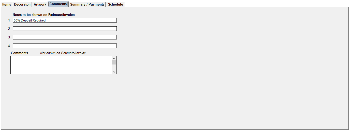 The comments box on this tab is only used to add internal comments about the job.
