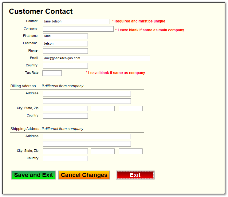 The customer contact full editor allows you to set overides for a customer that pertain to a specific customer contact.