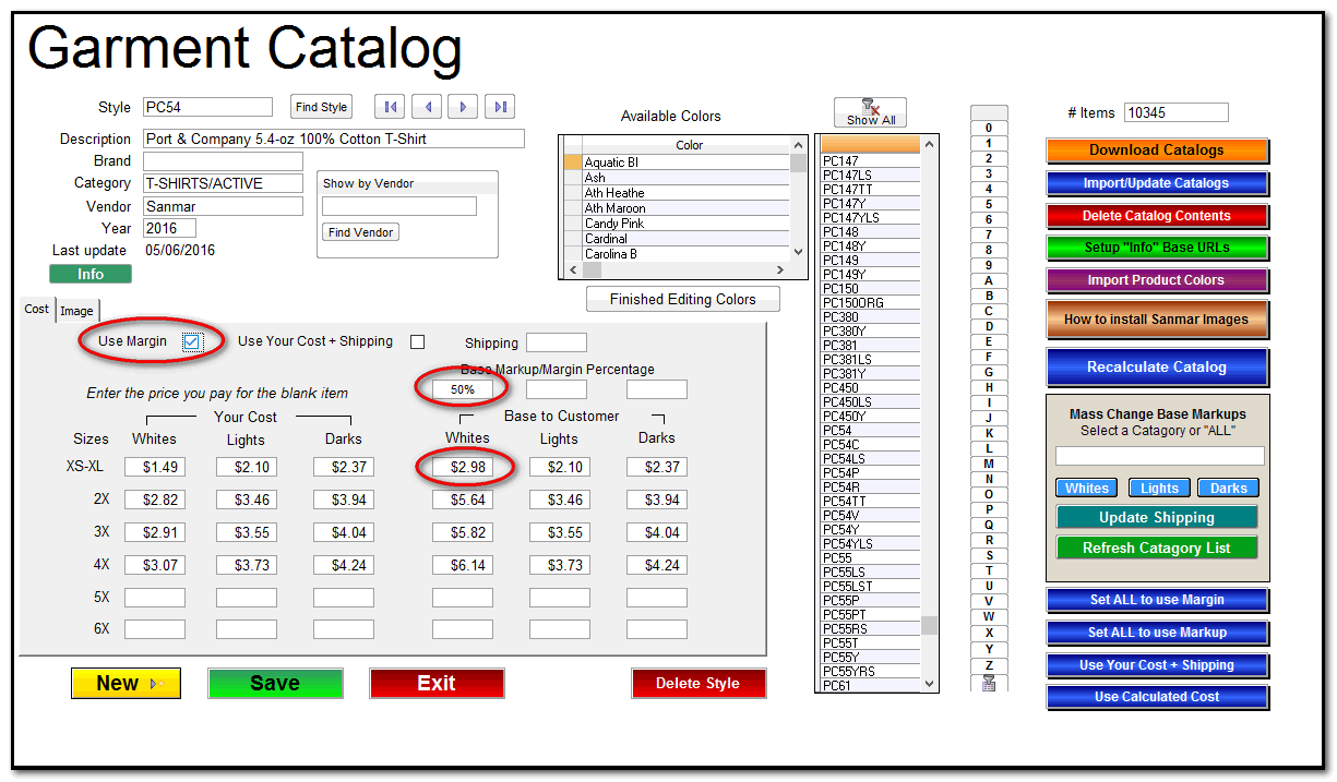 The Garment Catalog is the first step in setting up how T-Six prices.