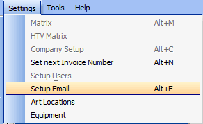 On the top menu, Click Settings and then select "Setup Email"