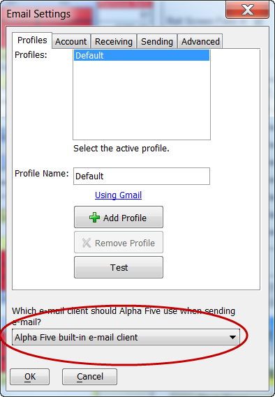 Set the email to use the "Alpha 5 builtin email client".