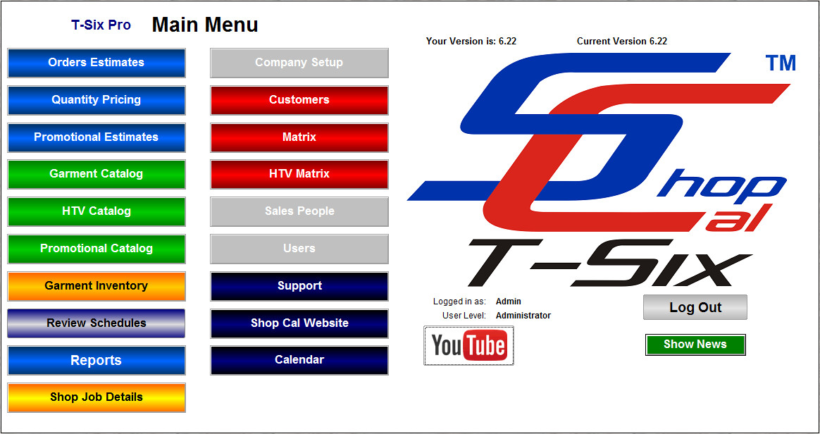 If you are using T-Six login security you will have choices grayed out and not accessable based on the access level of the user.