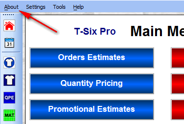 From the menu, click About