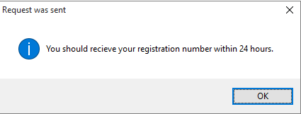 On the next popup Select "Request Registration Number"