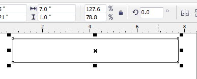 With the rectangle tool create a 7"x 1" rectangle. Set the fill to White.